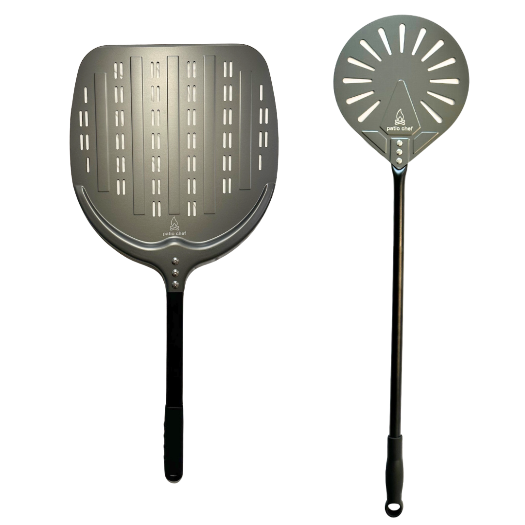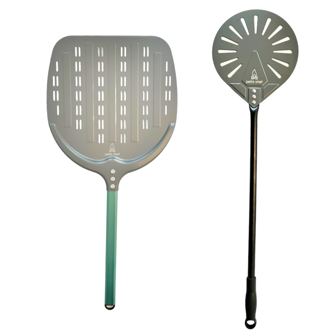Elevate your pizza-making with this premium pizza peel set, featuring a 14 inch launching peel and a 9 inch turning peel. Perfect for home and professional use, this set ensures precise and easy handling of your pizzas.