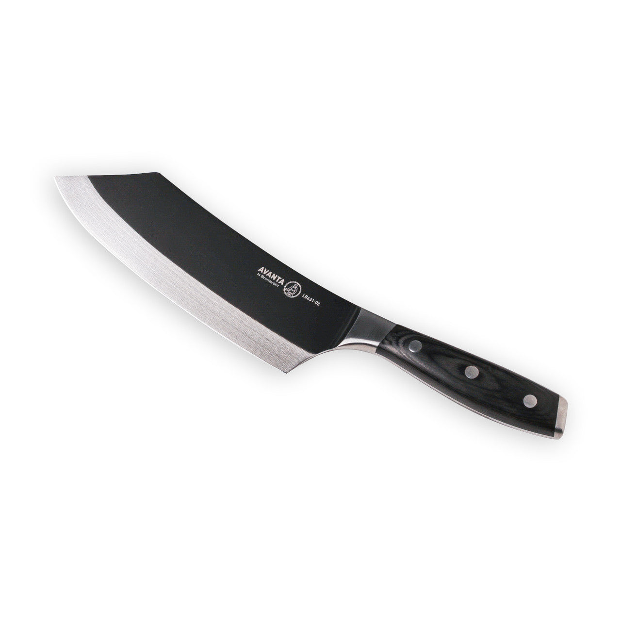 Cook like a boss! Messermeister‘s Avanta 8 inch BBQ knife was designed in collaboration with Bennie Kendrick, “The King of Backyard BBQ.” The knife has a deep rocker for effortless prep work on the cutting board. The butcher's style blade is ideal for cleaving and trimming meats. The 80/20 blade grind is finished with a razor sharp hollow ground edge. Designed with uncompromising attention to details, our high quality blades are crafted from German X50 stainless steel for knives that are rust resistant and easy to maintain. Solid bolsters and full tang construction give the knives great balance and heft.
