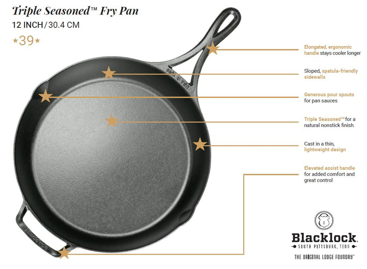 Blacklock - Triple Seasoned Cast Iron 12 Inch Skillet